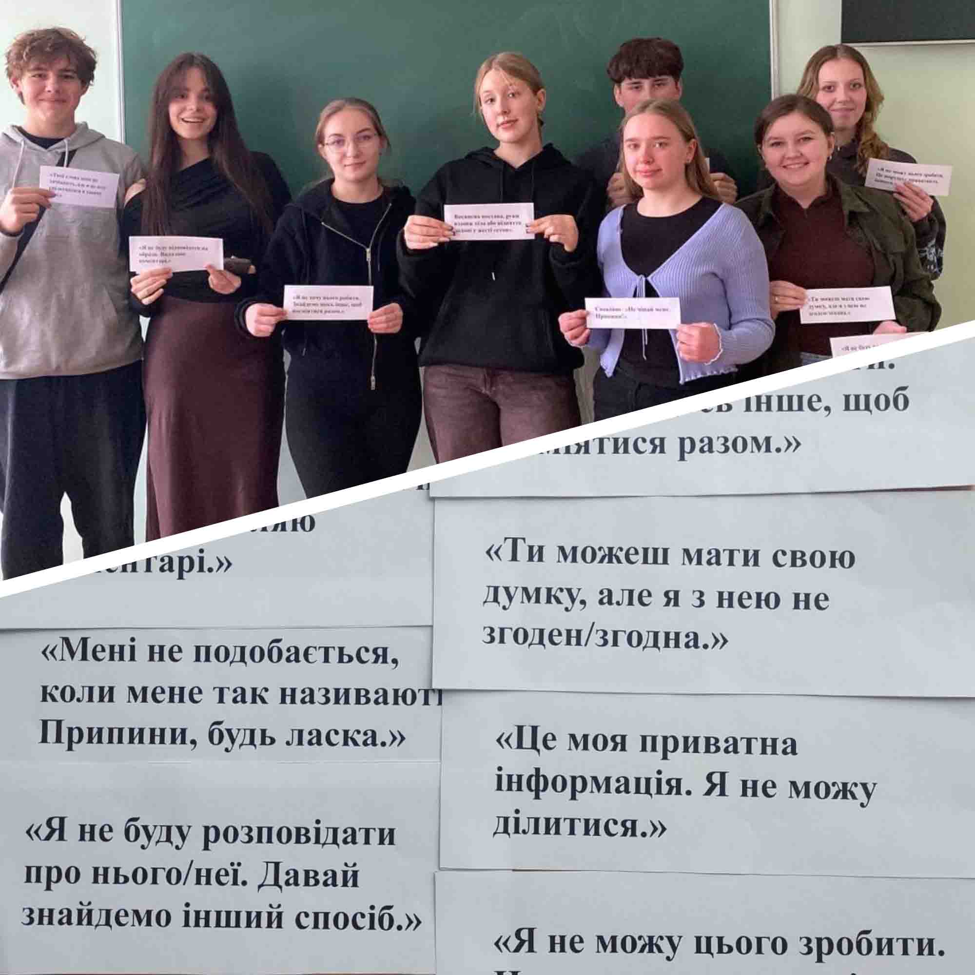 Рольова гра «Як сказати “Ні”» - здобувачі освіти вчилися реагувати на тиск та образи, використовуючи впевнені, але ненасильницькі відповіді. Вони відпрацьовували моделі поведінки, які допомагають захистити власну гідність, не провокуючи конфлікт.